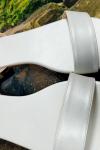 レビュー: ホワイトブライダルシューズ女性オープントゥアンクルストラップフラットウェディングシューズ