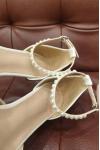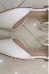 レビュー: ホワイトフラットブライダルシューズポインテッドトゥパールアンクルストラップウェディングシューズ