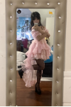 Very cute pink dress with frilly details, bows, and neck tie up. The many ruffle layers are cute and accent the bustier style top. Beautiful dress that I would recommend for others.