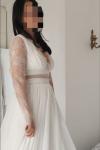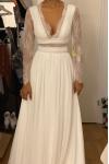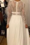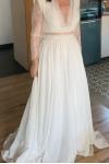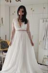 レビュー: アイボリーボヘミアンウェディングドレス レースAラインスイープロングスリーブVネックブライダルドレス 無料カスタマイズ