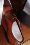Es ist echtes Leder, die Verarbeitung ist gut, die Details sind sehr gut und die Schuhe sind zum Formen mit Schaumstoff gefüllt.