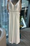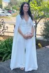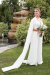 レビュー: ブライダルジャンプスーツ ストレッチクレープサッシュ フロアレングスジャンプスーツ Vネック ノースリーブ ナチュラルウエスト アイボリー