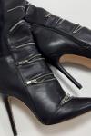 ブラックのオーバーニーブーツ、つま先が尖ったジッパーディテールのハイヒールサイハイブーツ