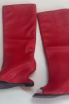 赤いニーハイブーツ、つま先が見えるデザインヒール、膝丈ブーツ