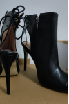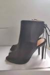 レビュー: ブラック アンクル ピープトウ スリングバック レースアップ ハイヒール ブーティー