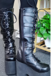 【安心保証】ロリィタブーツ ゴシック ブラック ハイプラットフォーム 丸いつま先 スカイハイヒール