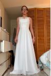 レビュー: シンプルなウェディングドレス 2025 シフォン Aライン vネック ノースリーブ レースビーズブライダルガウントレーン付き