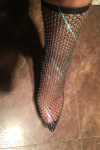 レビュー: 女性用クリアブーツポインテッドトゥハイヒールスタッズ透明ブーツセクシーフィッシュネットソックスブーツ
