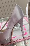 レビュー: アイボリーのウェディングシューズサテンラインストーンのぞき見つま先プラットフォームブライダルシューズ母の靴