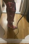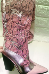 レビュー: オーバー ザ ニー ブーツ ウエスタン ブーツ ポインテッドトゥ チャンキー ヒール サイハイ ブーツ スネーク パターン レザー 女性