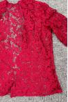 Tenue très élégante, fabrication fidèle à mes mensurations. Ensemble commandé en vert foncé, très belle couleur mise en valeur par le côté brillant de la dentelle.