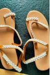 レビュー: ホワイト ビーズ フラット ウェディング サンダル ボヘミアン ウェディング シューズ