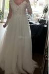 レビュー: アイボリーのシンプルなウェディングドレス、トレーン付き、Aライン、Vネック、長袖、背中開き、レース、ブライダルガウン、無料カスタマイズ