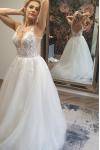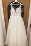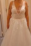 Magnifique aussi belle en vrai qu’en photo quelques retouches au brettelles car bien trop grande et une dans le dos mais sinon elle est sublime tulle pailleter et perle au niveau des bretelles juste sublime elle est parfaite