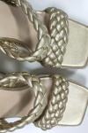 レビュー: 女性ヒールミュールオープントゥPUレザーブロンドウェッジサンダル