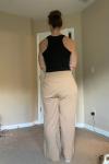 レビュー: カーキリネンパンツワイドレッグ弾性ウエストサマーパンツ