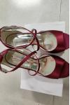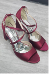 レビュー: 女性の結婚式の靴サテンのぞき見つま先ブロックヒールブライダルシューズ