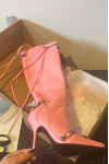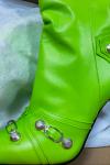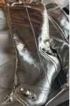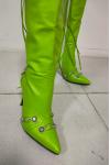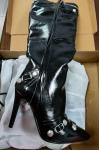 レビュー: 女性のニーハイブーツクラシックポインテッドトゥスティレットスキニーヒールスタッドバックルヴィンテージブーツ