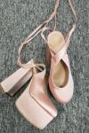 サテン プラットフォーム スリングバック レースアップ ハイヒール