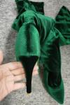 セクシーなオーバーニーブーツ グリーンベルベット ポインテッドトゥ ハイヒール サイハイブーツ