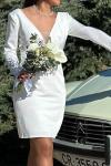 ショート ウェディング ドレス V ネック 長袖 シース ショート ブライダル ドレス