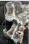 レビュー: シルバーニーブーツ スパンコールプラットフォーム パピーヒール レースアップニーハイブーツ