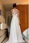 レビュー: シンプルなウェディングドレス 2026 シフォン Aライン vネック ノースリーブ レースビーズブライダルガウントレーン付き