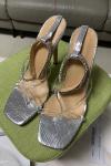 レビュー: スライバーアンクルストラップヒールラインストーンウエディングヒールサンダルスティレットヒールホームカミングシューズ