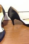 レビュー: パンプス ポインテッドトゥ ミッドローヒールシューズ ピンヒール 7.3cm ブラック シューズ シルクとサテン パーティー レディース靴