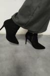 レビュー: ブーティ ハイヒール スエード ポインテッド トゥ アンクル ブーツ ジッパー付き 女性 ブラック