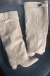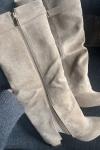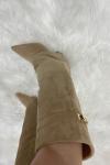 レビュー: スエードニーハイブーツ アプリコット ポインテッドトゥ バックルディテール ジップアップ チャンキーヒールブーツ