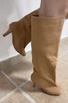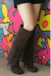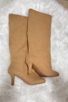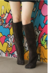 レビュー: スエードニーハイブーツ ワイドカーフ レディース スクエアトゥデザイン ハイヒールブーツ