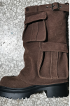 スエードミッドクラフブーツ レディース プラットフォーム ラウンドトゥ バックルディテール 乗馬ブーツ ポケット付き