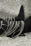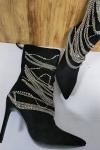 スエード ポインテッドトゥ スティレットヒール メタルディテール ミッドカーフブーツ