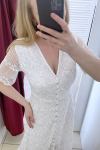 レビュー: サマードレス レース 半袖 ボタン ボヘミアン ロングドレス