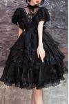 レビュー: 姫ロリドレス OP 半袖 ハイネック フリル リボンレ 甘ロリ 白 黒