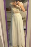 レビュー: ツーピースウェディングドレス レース レース Vネック ツーピース フロアレングス バックレス 半袖 アイボリー