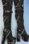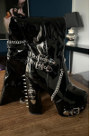 レビュー: ユニセックス ブラック サイハイブーツ プラットフォーム チャンキーヒール チェーンディテール オーバーニー ゴシックブーツ