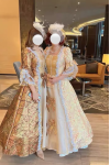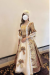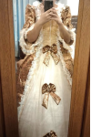 The material was great, it wasn't heavy, it was a little big, but I ordered it that way and when I used the corset ties in the back, I was able to tighten it. I will be purchasing from this company for my next ball gown. You definitely need the hoop skirt.