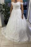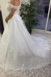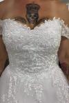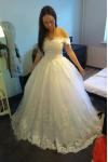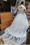 レビュー: プリンセスライン ウェディングドレス オフショルダー ブライダルドレス アイボリー 結婚式 二次会 披露宴 花嫁ドレス チュール ノースリーブ 挙式 コートトレーン レースアップ ウェディング ナチュラルウェストライン ウェディングドレス