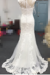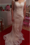レビュー: マーメイド ドレス ナチュラルウェストライン ウェディングドレス チュール 花嫁 ブライダル Vネック アイボリー オーダーメイドも可能 半袖 スウィープトレーン くるみボタン マーメイドライン 二次会 結婚式 披露宴 ウェディング