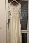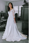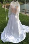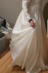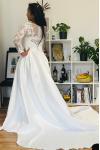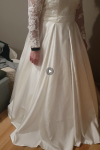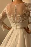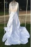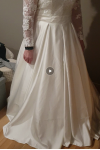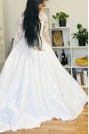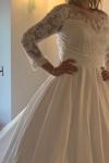 レビュー: プリンセスライン ウェディングドレス ラウンドネック ブライダルドレス アイボリー 結婚式 二次会 披露宴 花嫁ドレス サテン 長袖 挙式 コートトレーン くるみボタン ウェディング ナチュラルウェストライン ウェディングドレス