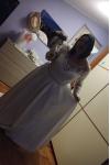 Je porte habituellement du 34 mais elle est un peu grande, je vous conseille une taille en dessous. Je mesure 148cm pour 51 kilos donc elel trane beaucoup au sol je vais la faire retoucher. Mais elle correspond totale au photo trs jolie. J’ai prise la couleur blanche mais prenez la couleur ivoir pour que la partie haute de la robe se fond avec votre teint
