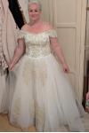 サイズは完璧で、とてもかわいいドレスで、後ろにレースが付いているので調整が可能です。一方、アイボリーの模様はかわいいですが、それだけでは少し多すぎます。