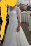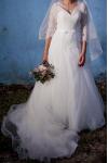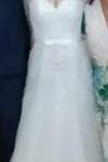 レビュー: ウェディングドレス 2025 Aライン アイボリー Vネック レースチュール ハーフスリーブブライダルドレストレーン付き