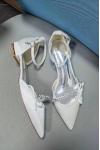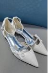 結婚式の靴サテンホワイト先のとがったつま先の弓フラットブライダルシューズ