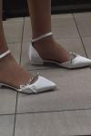 レビュー: 結婚式の靴サテンホワイト先のとがったつま先の弓フラットブライダルシューズ