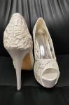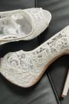 レビュー: ウェディングシューズ レースピープトウスティレットヒールプラットフォームブライダルシューズ ホワイト