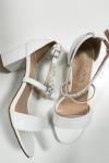 レビュー: ホワイト ブライダル サンダル ホワイト ブロック ヒール パール クロス ウェディング サンダル