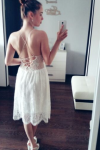 レビュー: ホワイト レースドレス 2026 ボーホー サマードレス レディース Vネック レースアップ バックレス スリップドレス